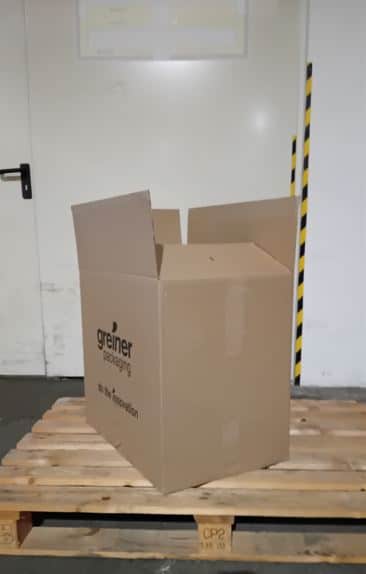 Greiner feliratos kartondoboz 590x390x510, barna-barna, C hullám, 3 rétegű – használt